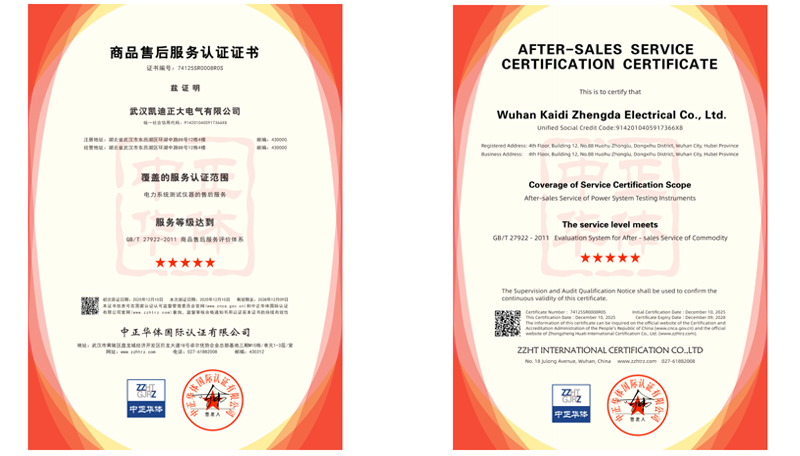 商品售后服務(wù)認證針對“電力系統(tǒng)測試儀器的售后服務(wù)”,并榮獲 五星級 最高評價,這直接證明了公司在售后服務(wù)領(lǐng)域擁有規(guī)范、高效、客戶至上的服務(wù)體系,客戶滿意度和品牌信譽獲得了國家級標準的認可。